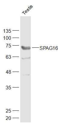 产品介绍 : Cilia and flagella are comprised of a microtubular backbone, the axoneme, which is organized by the basal body and surrounded by plasma membrane. SPAG16 encodes 2 major proteins that associate with the axoneme of sperm tail and the nucleus of postmeiotic germ cells, respectively (Zhang et al., 2007 [PubMed 17699735]).[supplied by OMIM, Jul 2008]