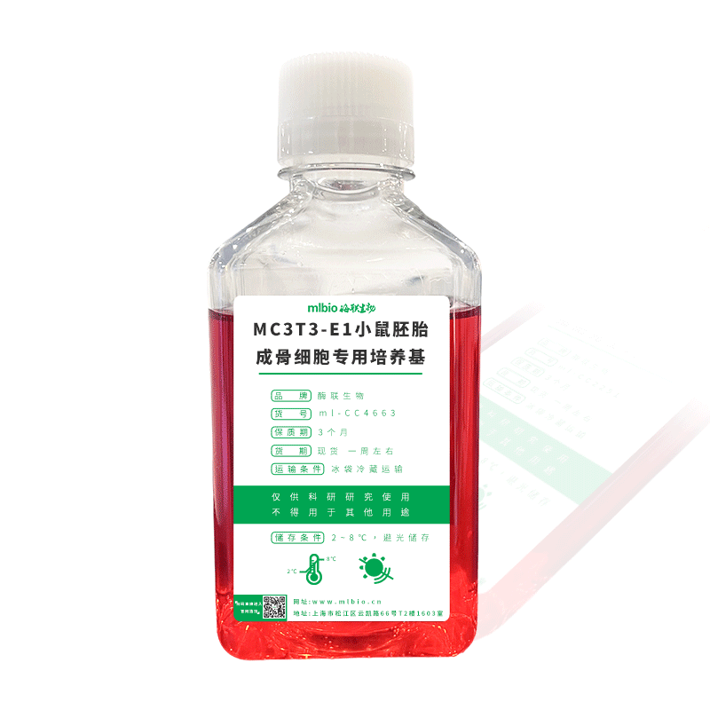 MC3T3-E1细胞专用培养基已包含MC3T3-E1细胞生长所需的各种成分,无需添加任何成分,可直接用于MC3T3-E1细胞的培养 |