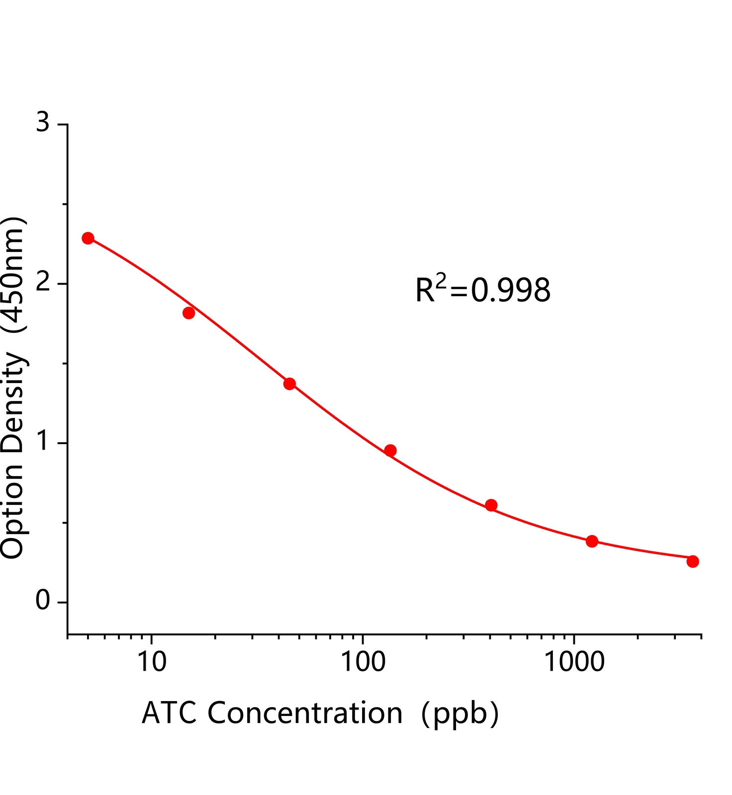 本试剂盒采用间接竞争ELISA方法,在酶标板微孔条上预包被偶联抗原,样本中乙草胺和微孔条上预包被的偶联抗原竞争乙草胺抗体,加入酶标二抗后,形成包被抗原-抗体-酶标二抗复合物。随后结合的酶催化TMB底物显色,样本吸光值与其含有的乙草胺成负相关。通过标准曲线可准确定量样品中乙草胺的含量。通过标准曲线计算所得值乘以样品处理的稀释倍数即为实际样品中乙草胺的含量。