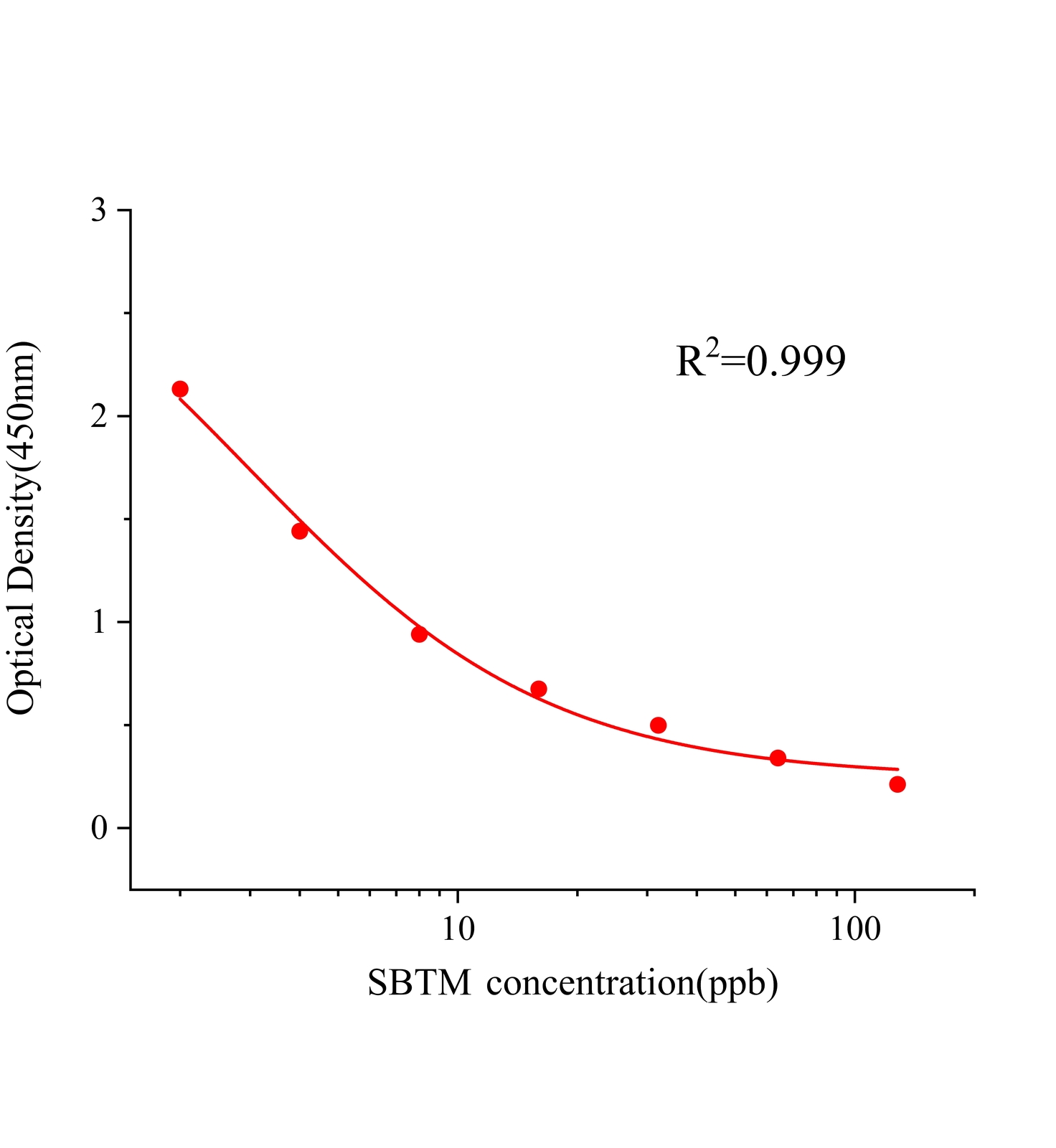本试剂盒采用间接竞争ELISA方法,在酶标板微孔条上预包被偶联抗原,样本中SBTM和微孔条上预包被的偶联抗原竞争SBTM抗体,加入酶标二抗后,形成包被抗原-抗体-酶标二抗复合物。随后结合的酶催化TMB底物显色,样本吸光值与其含有的SBTM成负相关。通过标准曲线可准确定量样品中SBTM的含量。通过标准曲线计算所得值乘以样品处理的稀释倍数即为实际样品中SBTM的含量。
