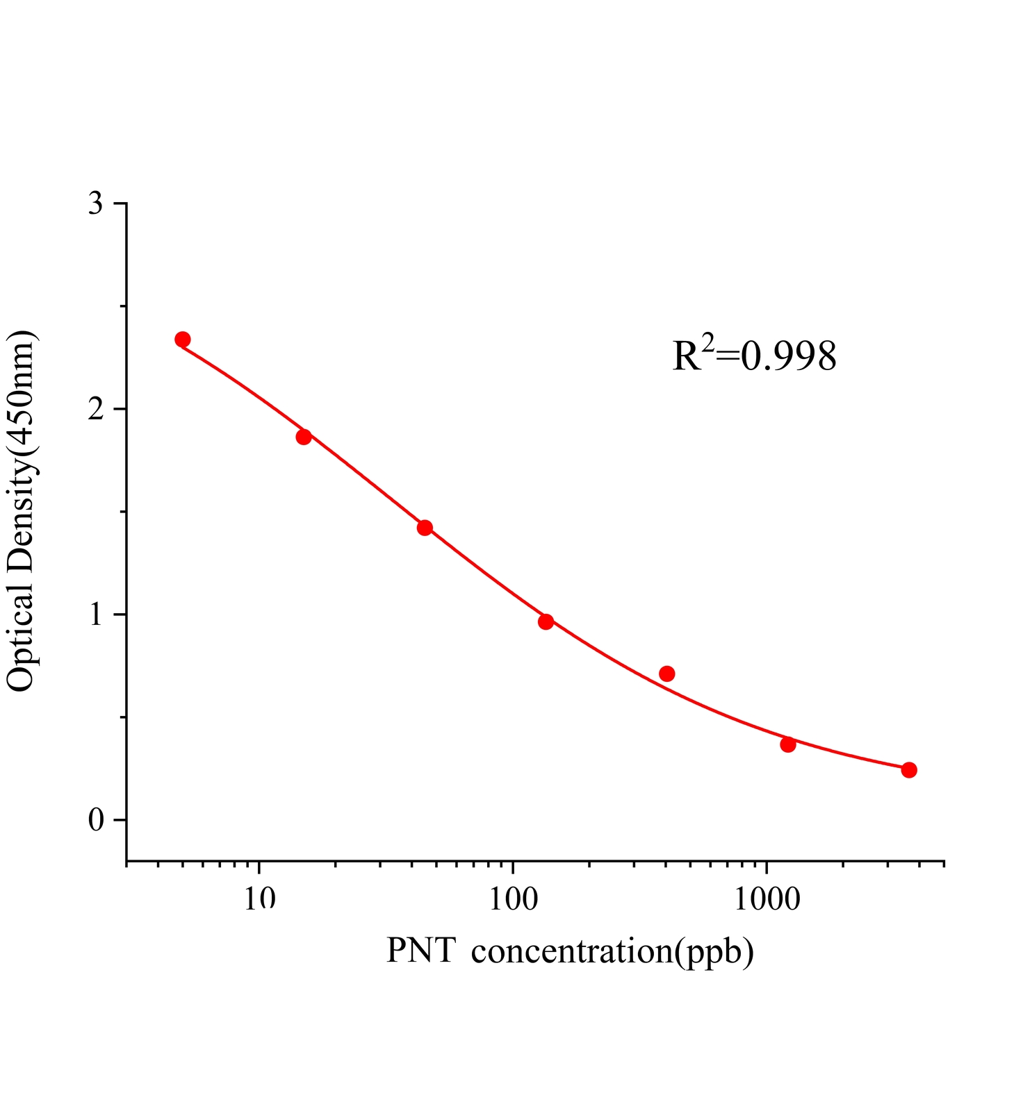 经样本测试,本试剂盒的检测灵敏度为5 ppb。