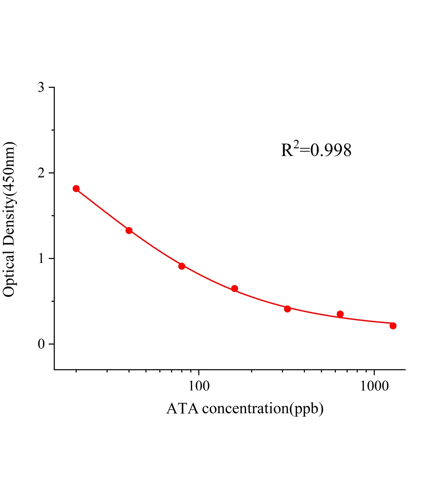 本试剂盒采用间接竞争ELISA方法,在酶标板微孔条上预包被偶联抗原,样本中松香酸和微孔条上预包被的偶联抗原竞争松香酸抗体,加入酶标二抗后,形成包被抗原-抗体-酶标二抗复合物。随后结合的酶催化TMB底物显色,样本吸光值与其含有的松香酸成负相关。通过标准曲线可准确定量样品中松香酸的含量。通过标准曲线计算所得值乘以样品处理的稀释倍数即为实际样品中松香酸的含量。